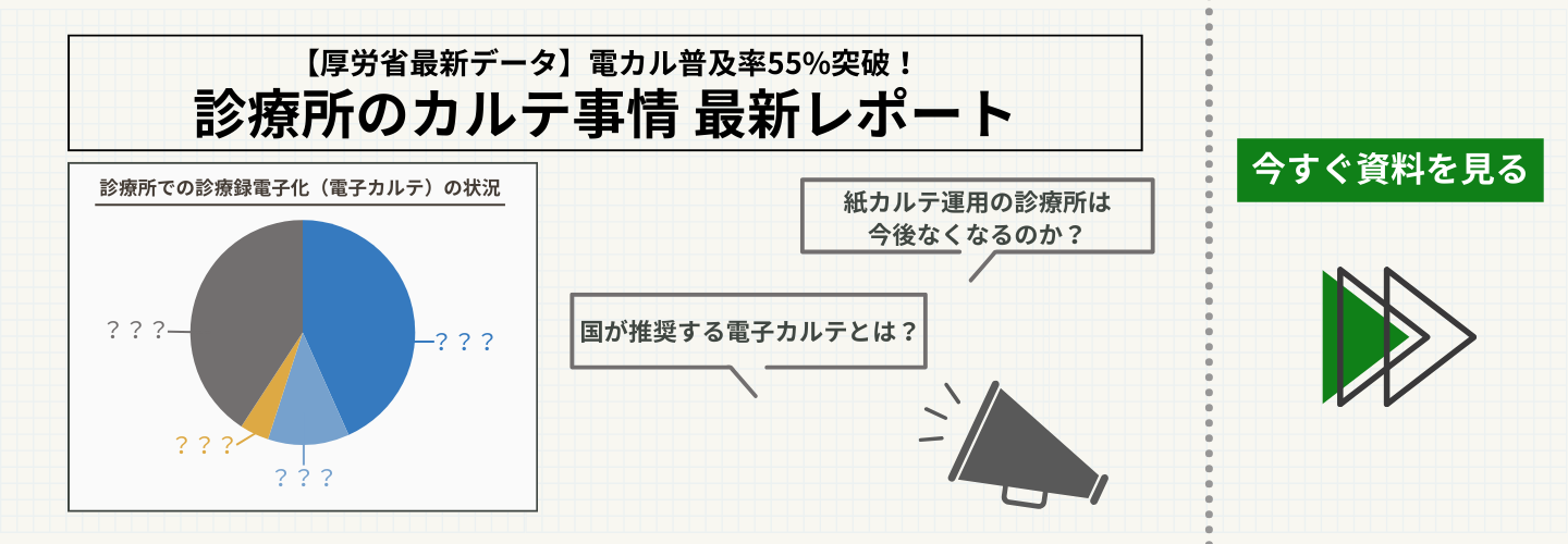 資料閲覧はこちら:【厚労省データ】電カル普及率55%突破! 診療所のカルテ事情レポート