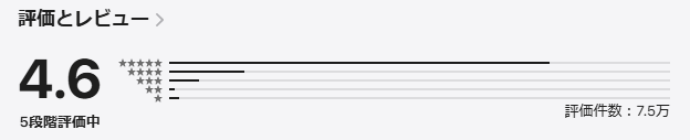 App Storeのアプリレビューでは7.5万件の評価が寄せられ、5点満点中4.6点という高評価をいただいております。これらの結果から、患者様にとって使いやすいサービスであると考えております。