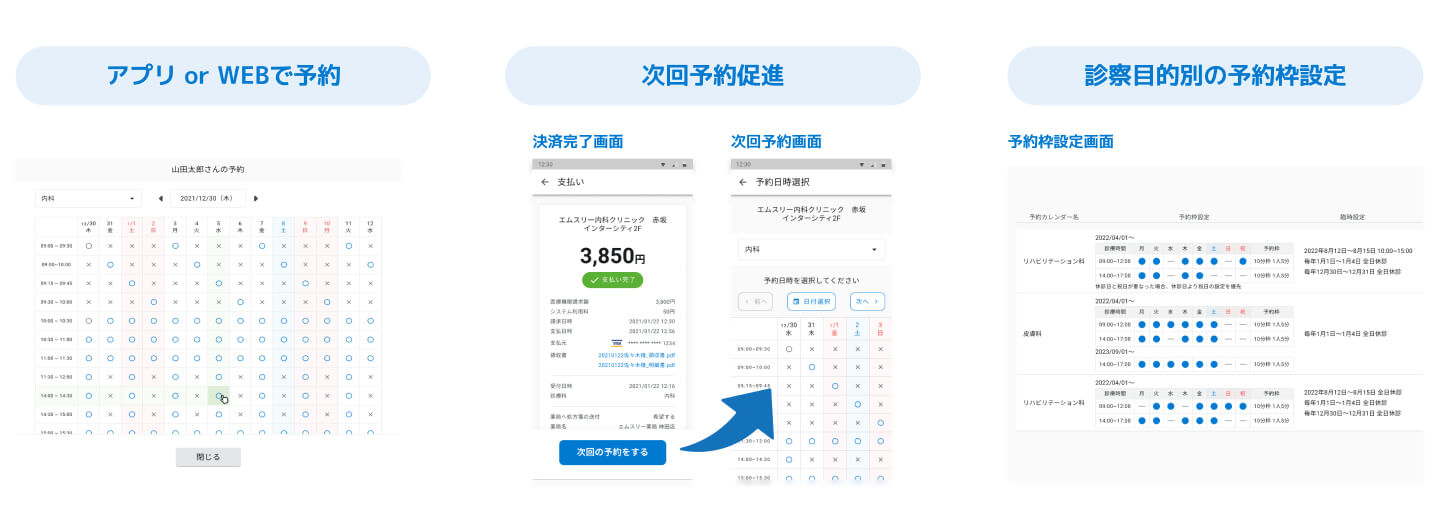 - Web利用:アプリのインストールなしでも、スマホ・PCから予約、問診、決済等を利用できます。