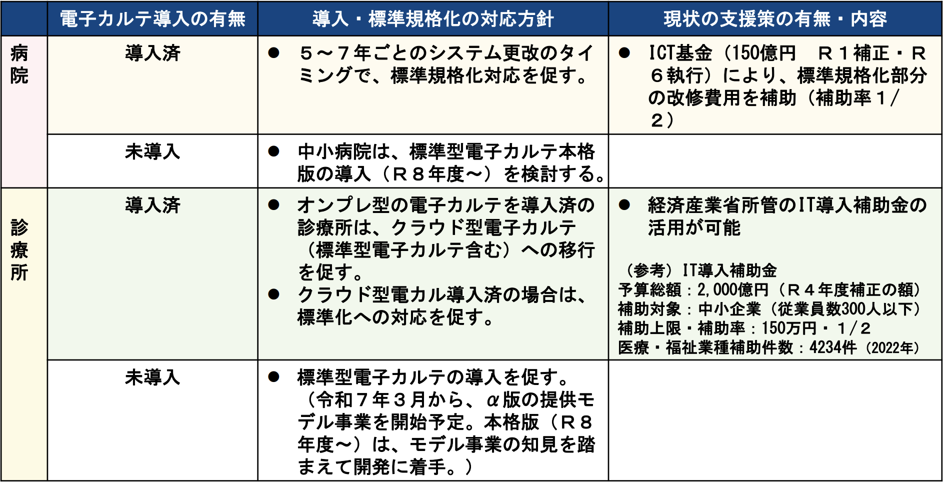 参考: 厚生労働省「医療DXの更なる推進について第2回標準型電子カルテ検討ワーキンググループ資料」p19 (令和6年3月7日発行)
