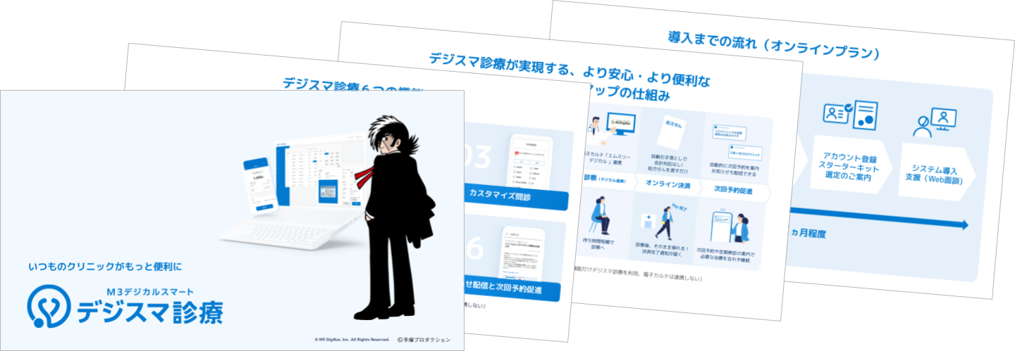 資料閲覧はこちら:デジスマ診療│予約、受付、問診、決済等クリニックの業務全般を大幅軽減するシステムガイド