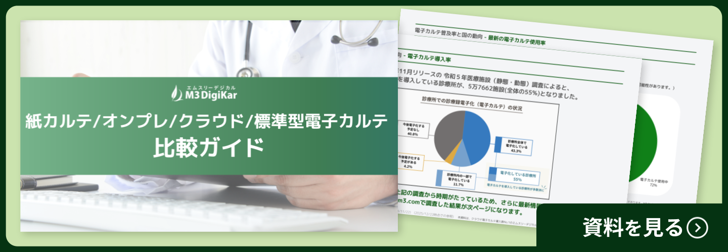 資料閲覧はこちら:紙カルテ/オンプレ/クラウド/標準型電子カルテ 比較ガイド