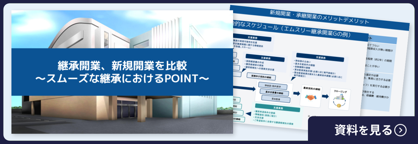 資料閲覧はこちら:【継承と廃院】それぞれの手順と、メリット・デメリットを解説