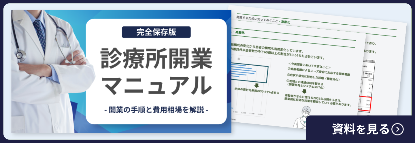 資料閲覧はこちら:診療所開業マニュアル-開業の手順と費用相場を解説-